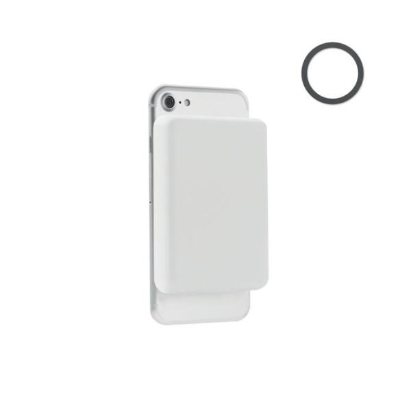 Magnetische draadloze lader (15W) en power Bank (5000 mAh). Output: DC DC 9V/2,22A (20 W) ideaal voor snel opladen. Inclusief extra magnetische metalen ring ter ondersteuning van het opladen van andere niet- magnetische draadloze oplaadbare telefoons. In/uitgang Type-C.