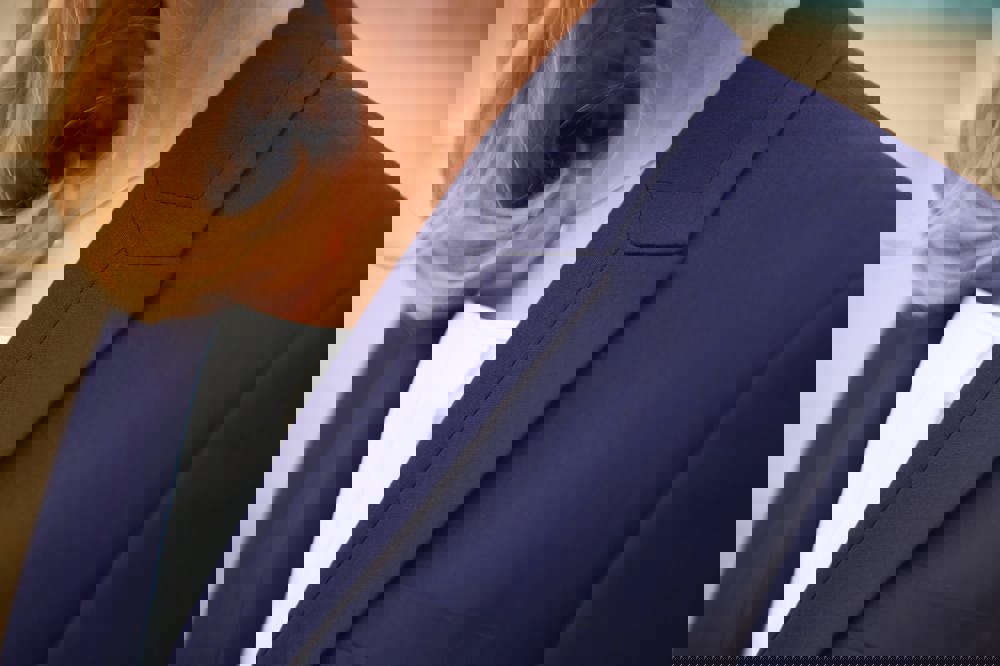 Damesblazer met 2 knopen. Getailleerde snit. Revers met decoratieve stiksels. Split aan de achterkant. 1 binnenzak. 1 borstzak.