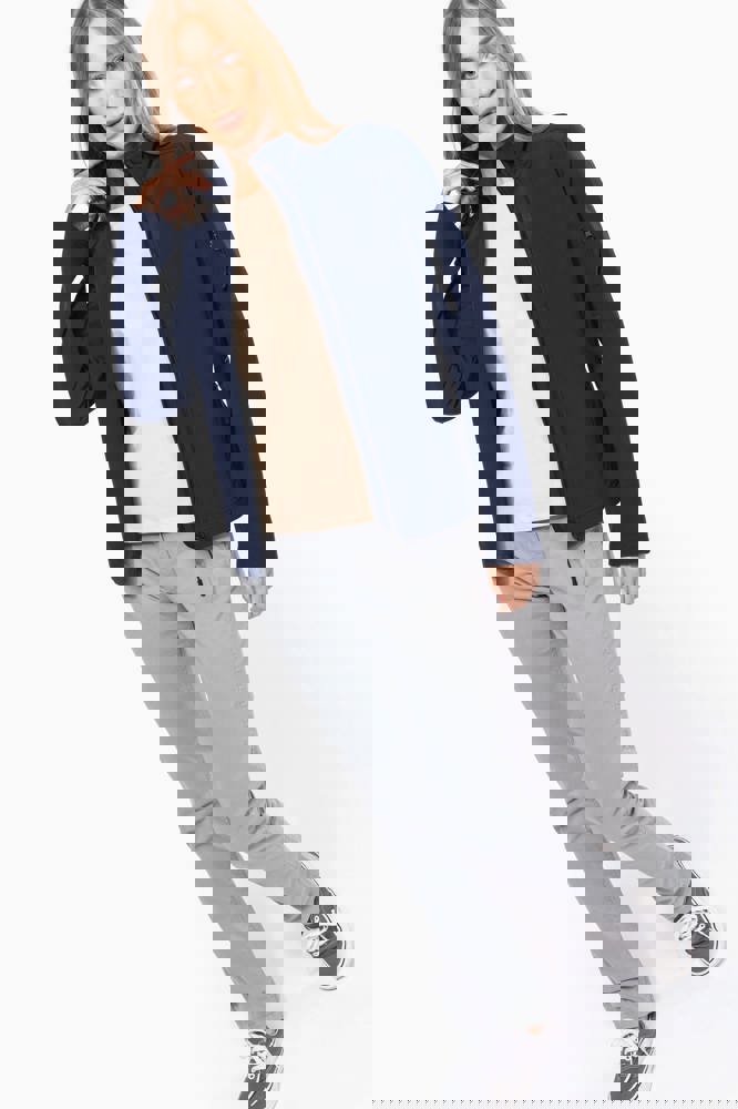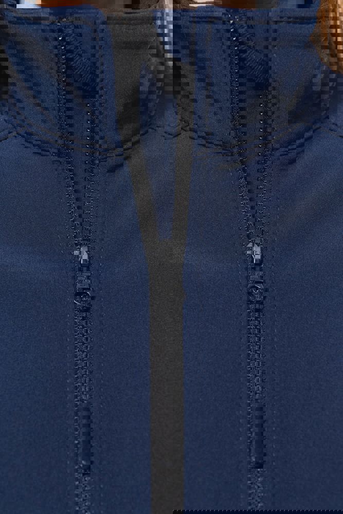 95% polyester / 5% elasthan. Stof in 3 lagen aan elkaar geklit, ademend 3000 g/m2/24H en 8000 mm waterdicht. Buitenkant: 95% polyester / 5% elasthan. Tussenlaag: ademend membraan. Binnenkant: microfleece. Getailleerde snit. Ritssluiting. Zakken met rits aan de voorkant. 1 zak met rits op de linkermouw.