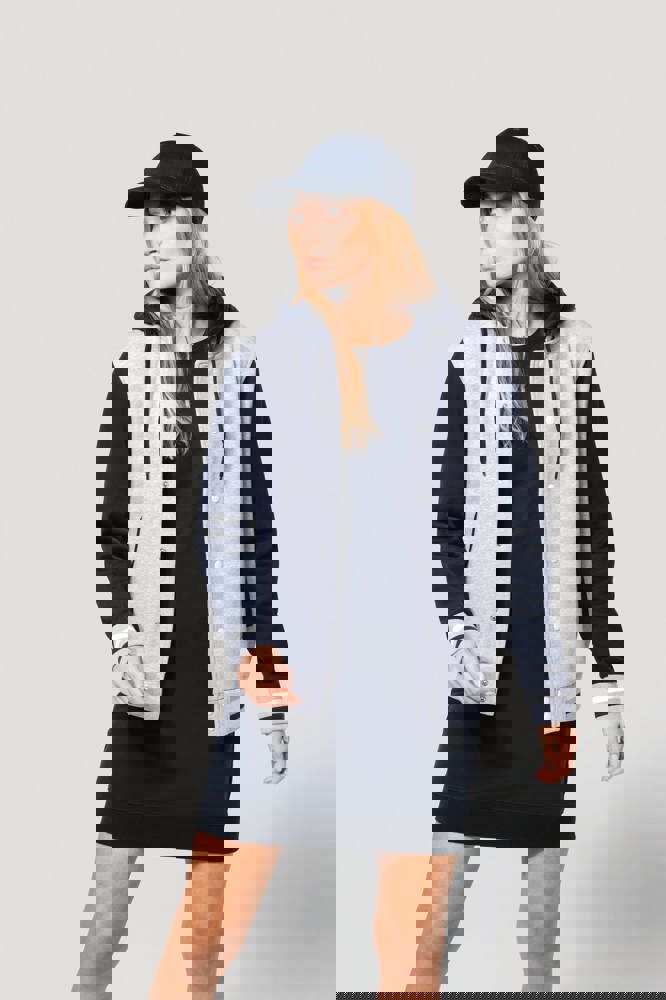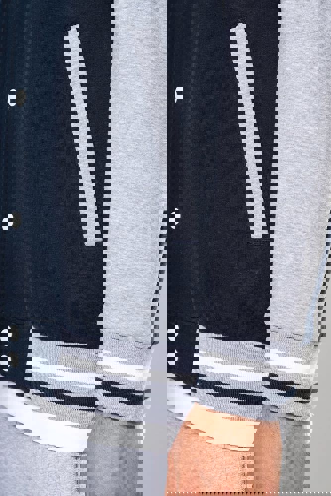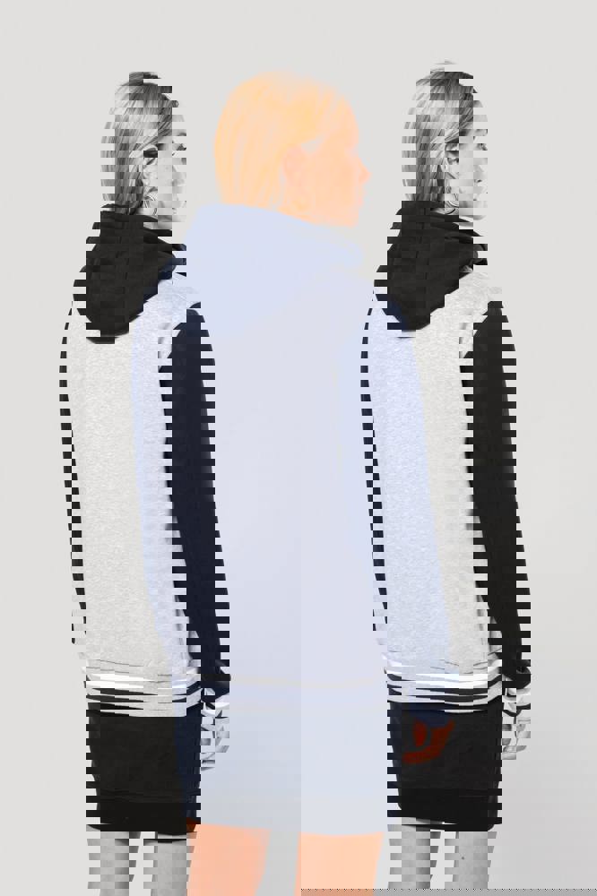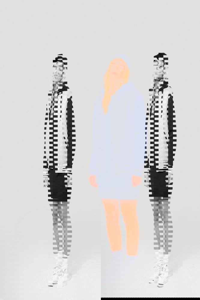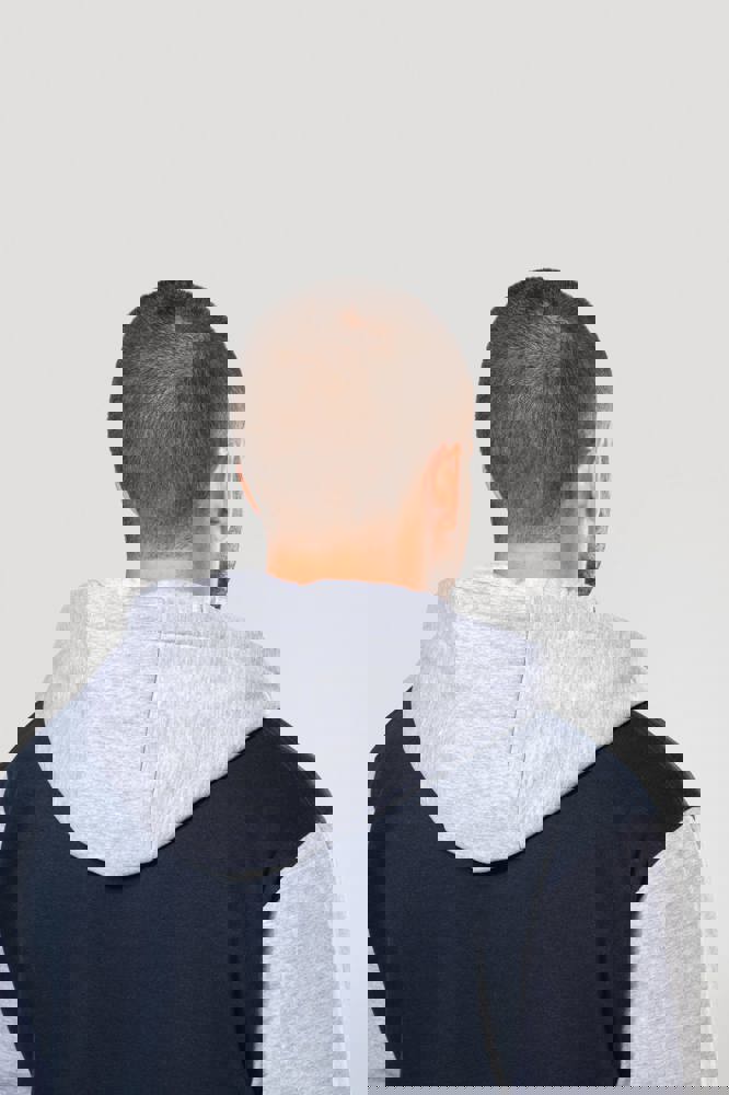 70% katoen / 30% polyester. Geborsteld fleece 3 draden. Contrasterende ingezette mouwen. Driedelige capuchon, voering in jersey en contrasterende koordjes. Sluit aan de voorkant met drukknopen. Ribboord met 2 contrasterende biesjes aan kraag, mouwen en onderkant. 2 omzoomde zakken aan de voorkant. Nektape met visgraatmotief en ophanglus in de kraag. Geen merklabel in de kraag, maar enkel een maatlabel voor eenvoudige personalisatie. De legendarische College jacket gaat al vele jaren mee. Hij is alomtegenwoordig: van de straat tot de schoolbanken en zelfs het podium.