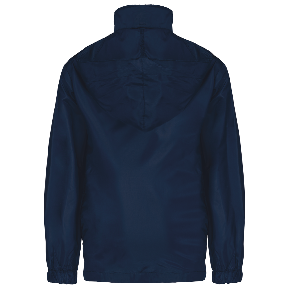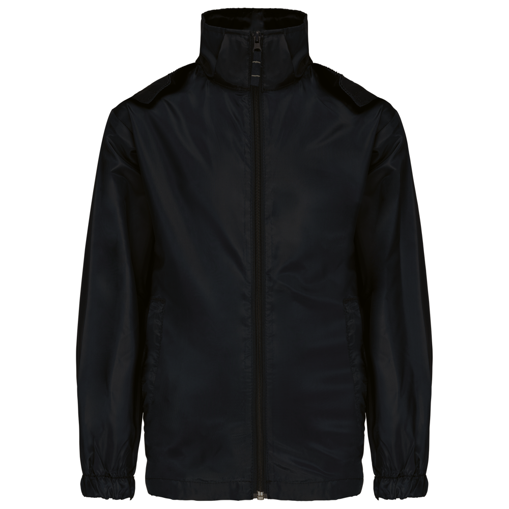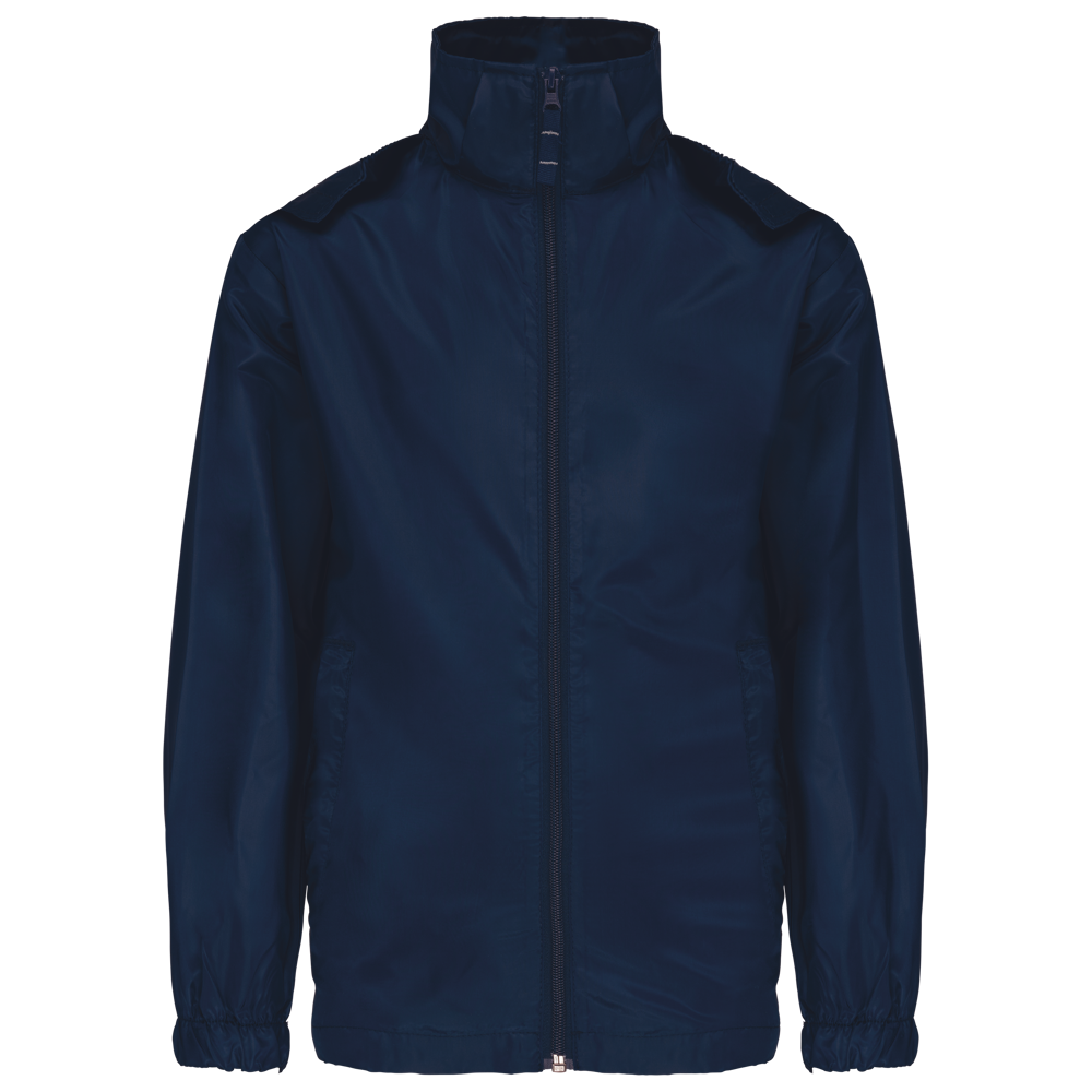 100% polyester. Toon op toon ritssluiting. Capuchon in de kraag met klittenbandsluiting. 2 voorzakken met ritssluiting. Elastische mouwuiteinden. Opvouwbaar volgens het K-Way® systeem.