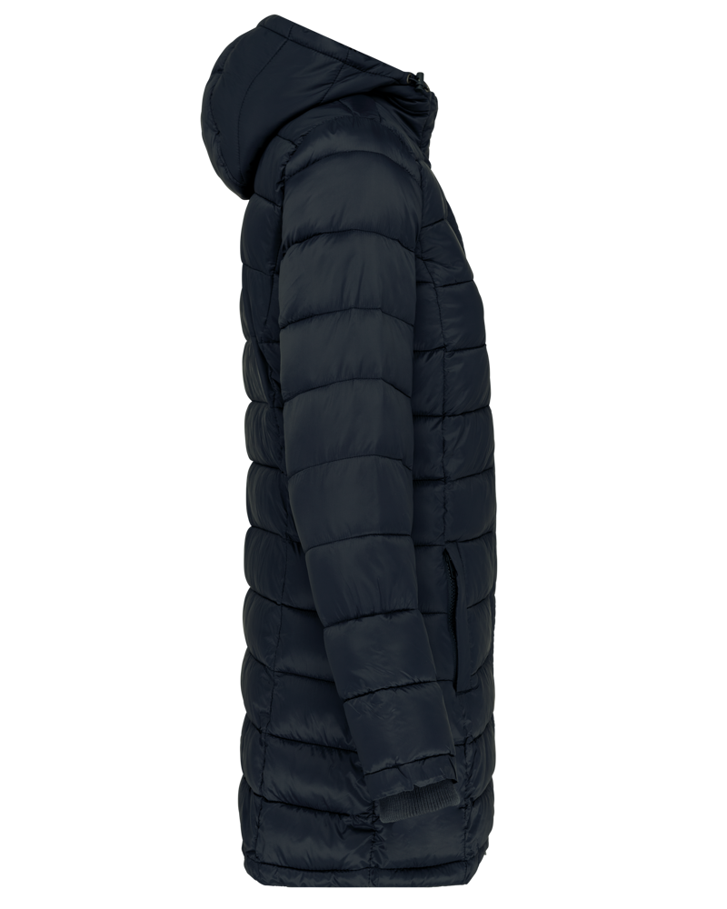 100% polyamide. Binnenvoering van polyester. Warm en ultralicht. Getailleerde snit. 2 zakken aan de voorkant en 1 borstzak met rits en biesjes. Verborgen ritssluiting onder een drukknooplijst. Binnenkant kraag en mouwuiteinden in ribboord. Contrasterende binnenkant capuchon en lichaam : Convoy Grey voor Zwart. Effen binnenkant capuchon en lichaam: Navy voor Navy. Geïnjecteerde vulling: het gewicht kan variëren afhankelijk van de zones van het kledingstuk. Het totaalgewicht is indicatief.