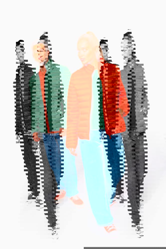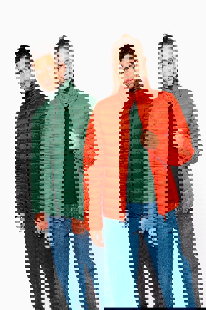 Buitenkant : 100% polyamide. Marl Silver : 70% polyester/ 30%polyamide. Marl Dark Grey : 70% polyamide / 30% polyester. Polyester binnenvoering. Warm en ultralicht. Samenpersbaar in de opbergtas. 2 voorzakken met rits. Contrasterende binnenzijde: Convoy Grey voor Black, Red, Marl Dark Grey en Marl Silver; Navy voor Light Royal Blue, Mineral Green, Dark Khaki en Wine; Black voor Forest Green; Dark Khaki voor Jungle Camo. Toon-op-toon interieur: Burnt Ochre voor Burnt Ochre; Navy voor Navy; White voor White. Geïnjecteerde vulling: het gewicht kan variëren afhankelijk van de zones van het kledingstuk. Het totaalgewicht is indicatief.