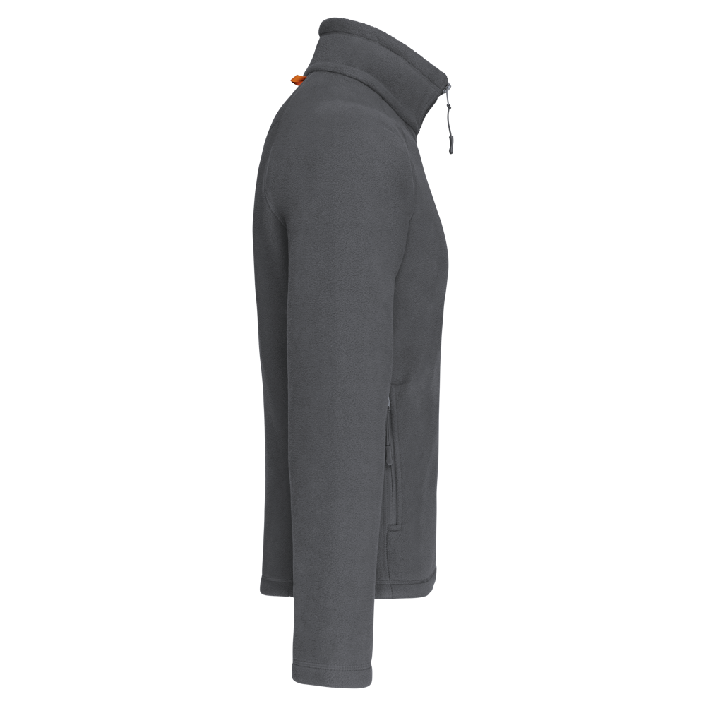 100% polyester microfleece met anti-pilling behandeling. Raglan mouwen. Ritssluiting. 2 voorzakken met rits. 2 binnenzakken. Aanrijgkoord. Afwerkingsbiesjes aan de binnenzakken en bandje rond de hals in contrastkleur.