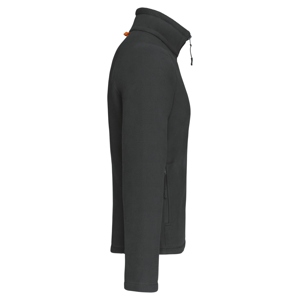 100% polyester microfleece met anti-pilling behandeling. Raglan mouwen. Ritssluiting. 2 voorzakken met rits. 2 binnenzakken. Aanrijgkoord. Afwerkingsbiesjes aan de binnenzakken en bandje rond de hals in contrastkleur.
