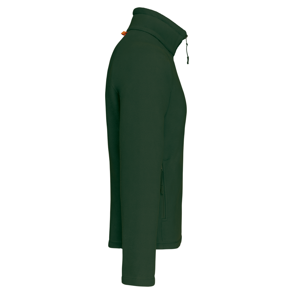 100% polyester microfleece met anti-pilling behandeling. Raglan mouwen. Ritssluiting. 2 voorzakken met rits. 2 binnenzakken. Aanrijgkoord. Afwerkingsbiesjes aan de binnenzakken en bandje rond de hals in contrastkleur.