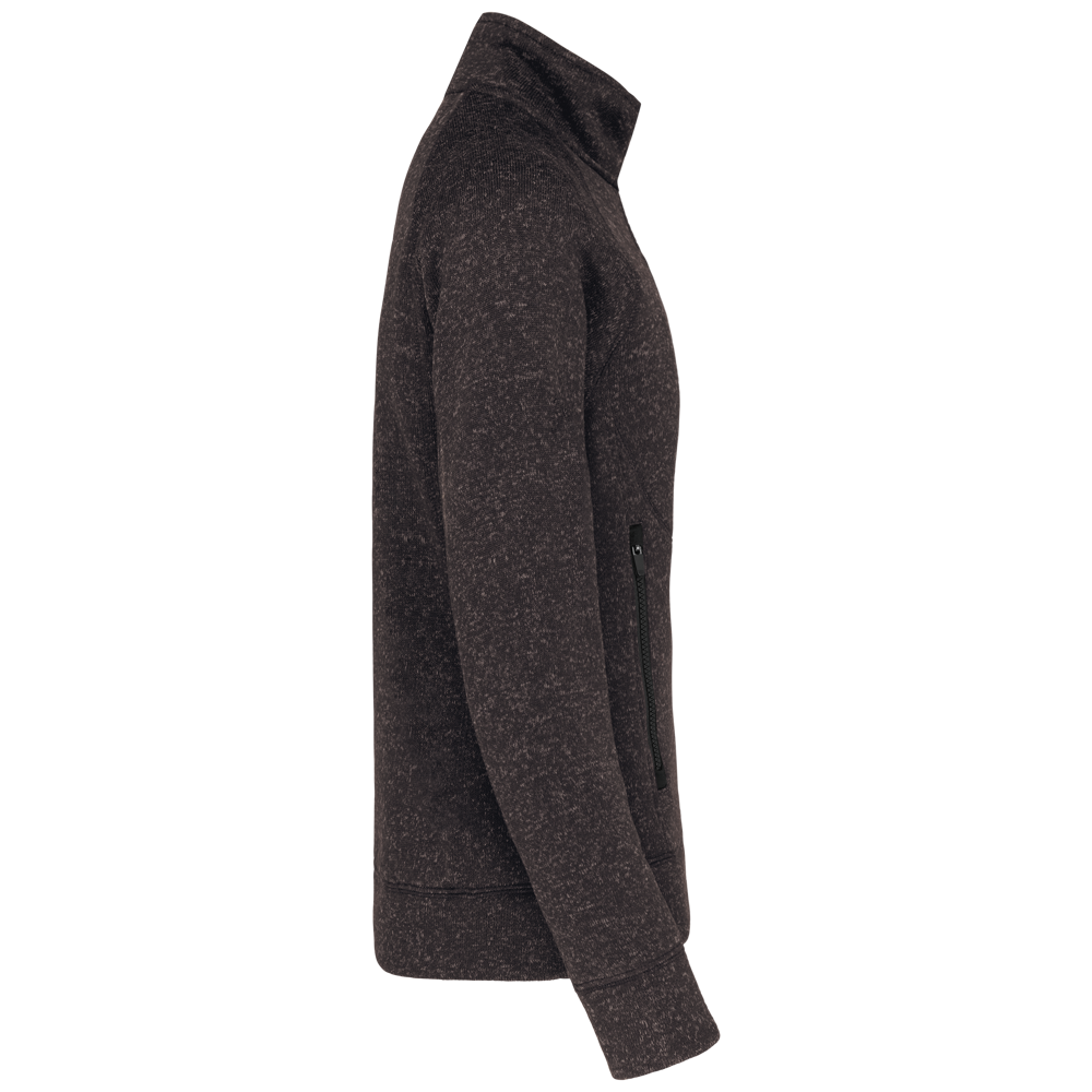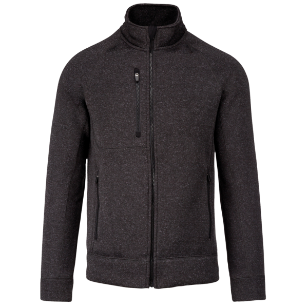Geborstelde binnentricot 100% polyester. Raglanmouwen. Ritssluiting. 2 contrasterende ritszakken aan de voorkant en 1 contrasterende borstzak met rits. Overlocksteek op de inzetstukken. Heel comfortabele snit en stof.