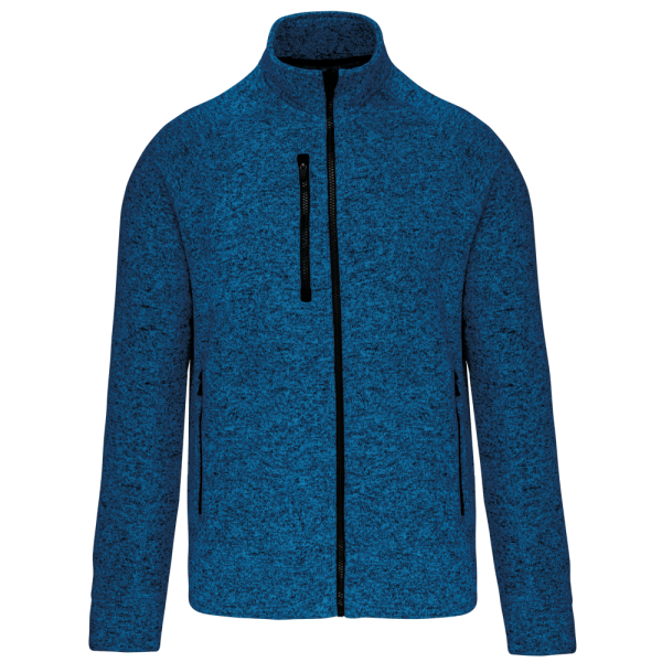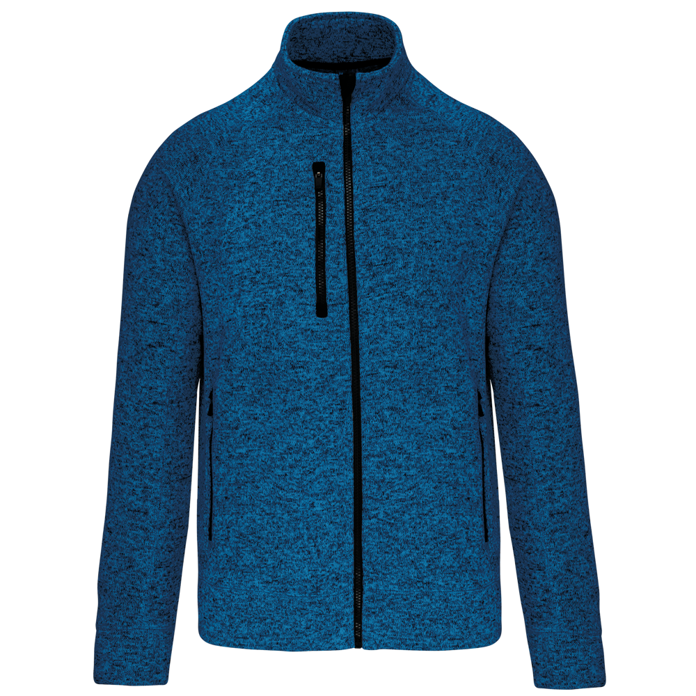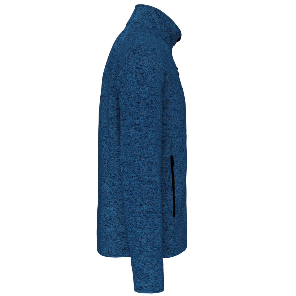 Geborstelde binnentricot 100% polyester. Raglanmouwen. Ritssluiting. 2 contrasterende ritszakken aan de voorkant en 1 contrasterende borstzak met rits. Overlocksteek op de inzetstukken. Heel comfortabele snit en stof.