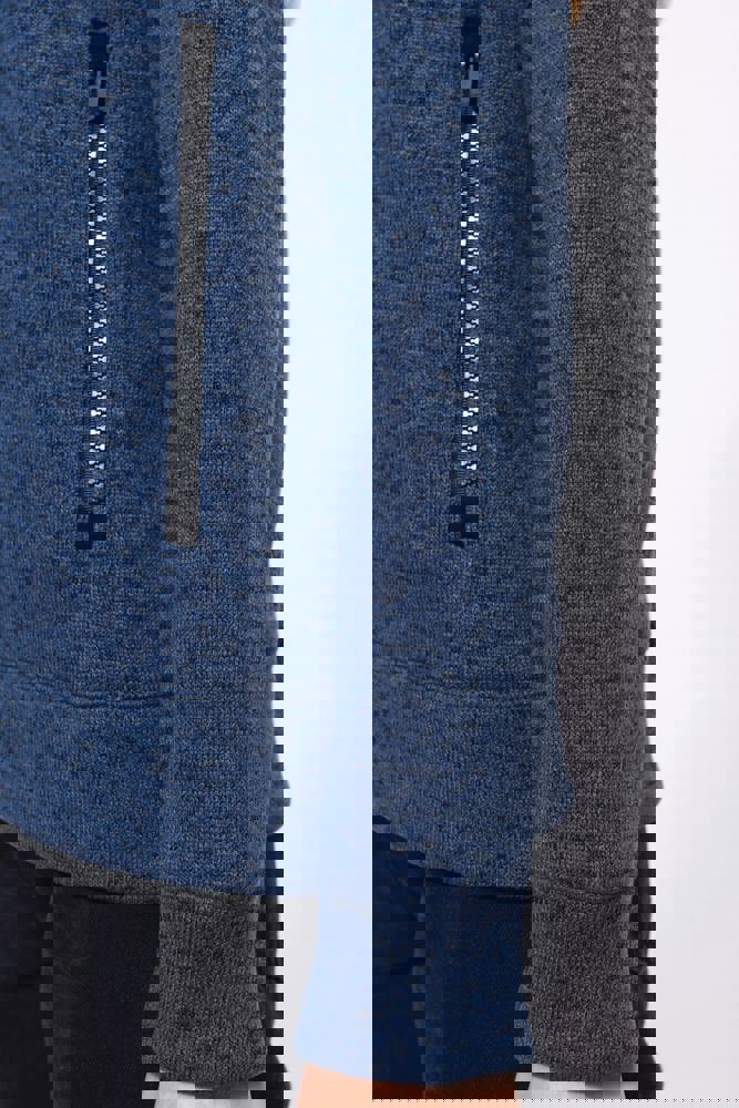 Geborstelde binnentricot 100% polyester. Raglanmouwen. Ritssluiting. 2 contrasterende ritszakken aan de voorkant en 1 contrasterende borstzak met rits. Overlocksteek op de inzetstukken. Heel comfortabele snit en stof.