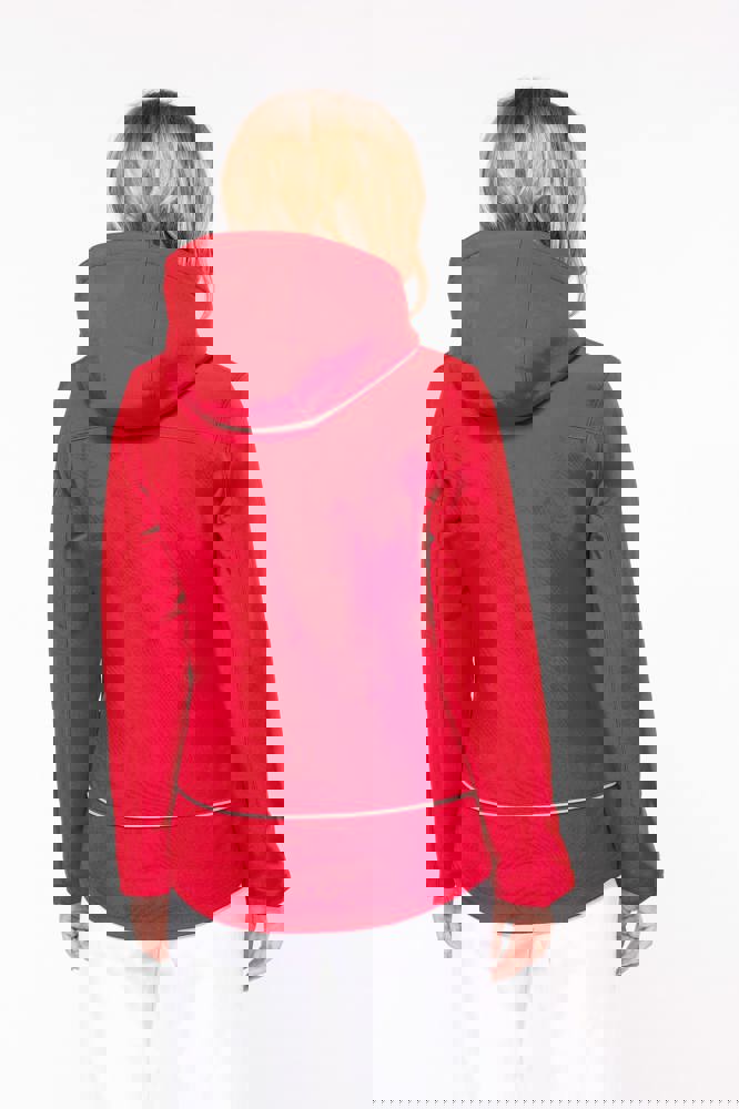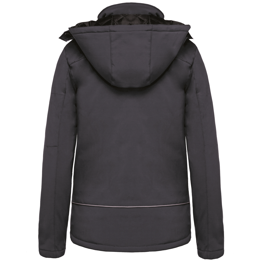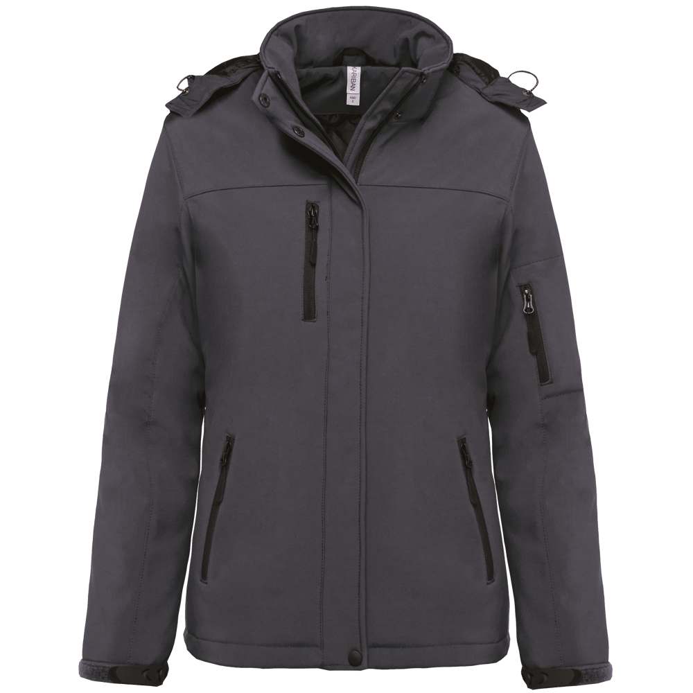 95% polyester / 5% elasthan. 3-laagse ademende stof 3000 g/m²/24 u en waterdicht 8000 mm. Buitenkant: 95% polyester / 5% elasthan. Tussenlaag: ademend membraan. Binnenlaag: microfleece. Gewatteerde voering van 100% polyester. Voorkant: 4 ritszakken (2 aan de zijkant, 1 op de mouw, 1 rechts op de borst). 2 binnenzakken met drukknoop. Afneembare capuchon met 3 gevoerde en gewatteerde panelen, regelbaar met stoppers. Met klittenband regelbare mouwuiteinden. 1 rits aan de linkerkant en 1 drukkersrits.