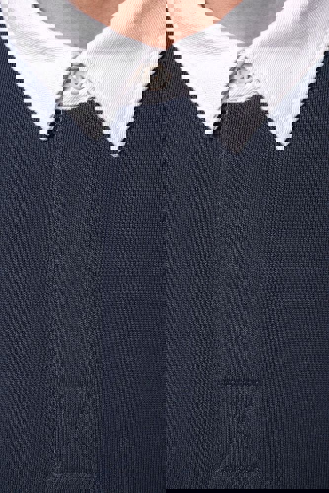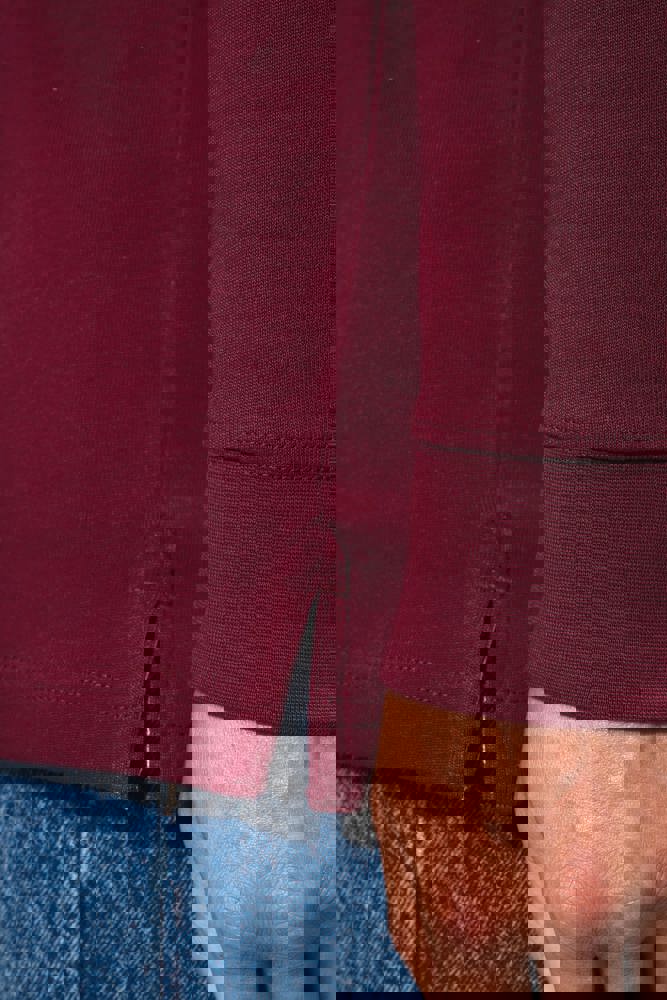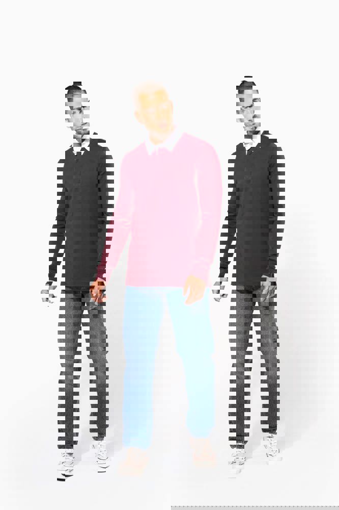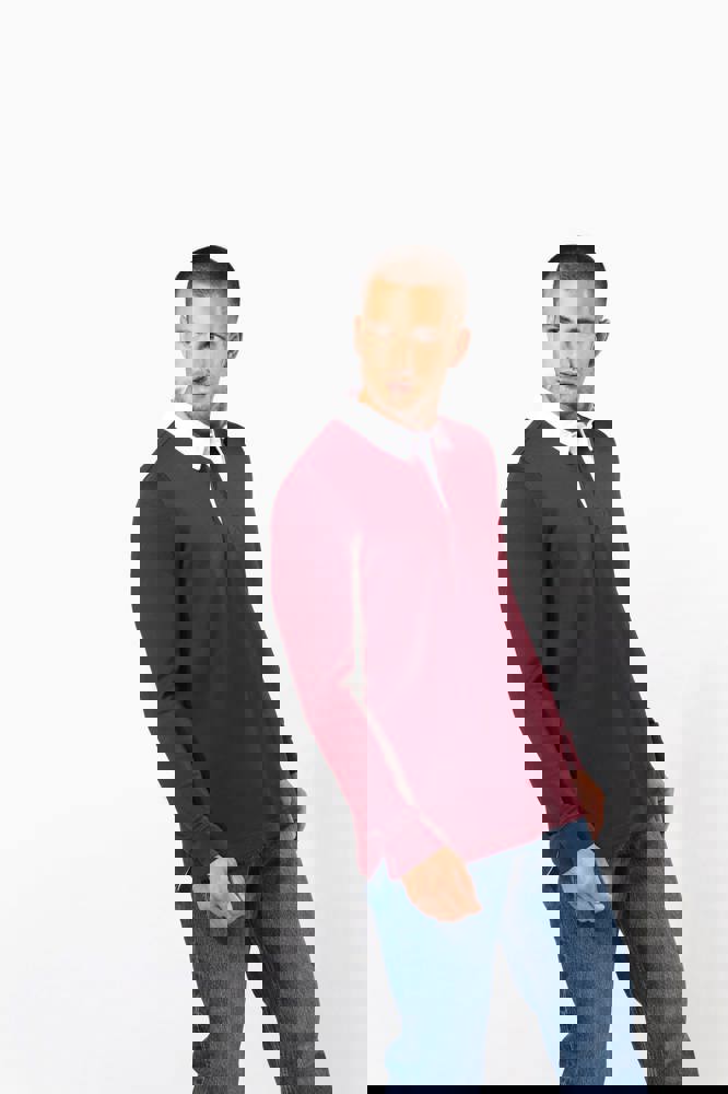 100% Gekamd katoen. Voorgekrompen gekamd jerseykatoen. Kraag in contrasterend wit twillkatoen (behalve de kleuren Red en Dark Grey, die een zwarte kraag hebben). Lijst met 3 knopen. Mouwuiteinden in 1x1 ribboord. Afwerking met visgraatmotief op de binnenzijde van de kraag en aan de zijsplitten.
