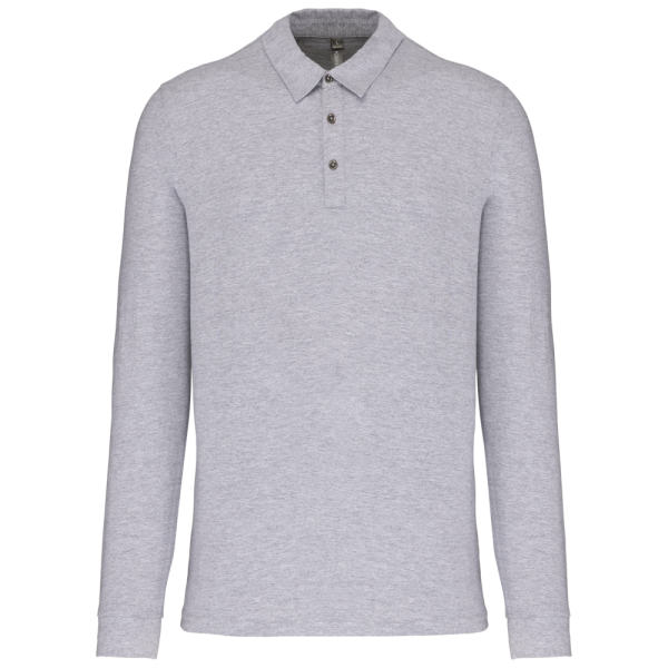 100% katoen (Heather Grey: 65% katoen / 35% polyester - Oxford Grey : 90% katoen / 10% viscose). Katoenen, gekamde jersey. Hemdskraag. Knooplijst met 3 metalen knopen. Inzetstuk op de schouder. Mouwuiteinden in ribboord. Dubbel stiksel aan de onderkant.