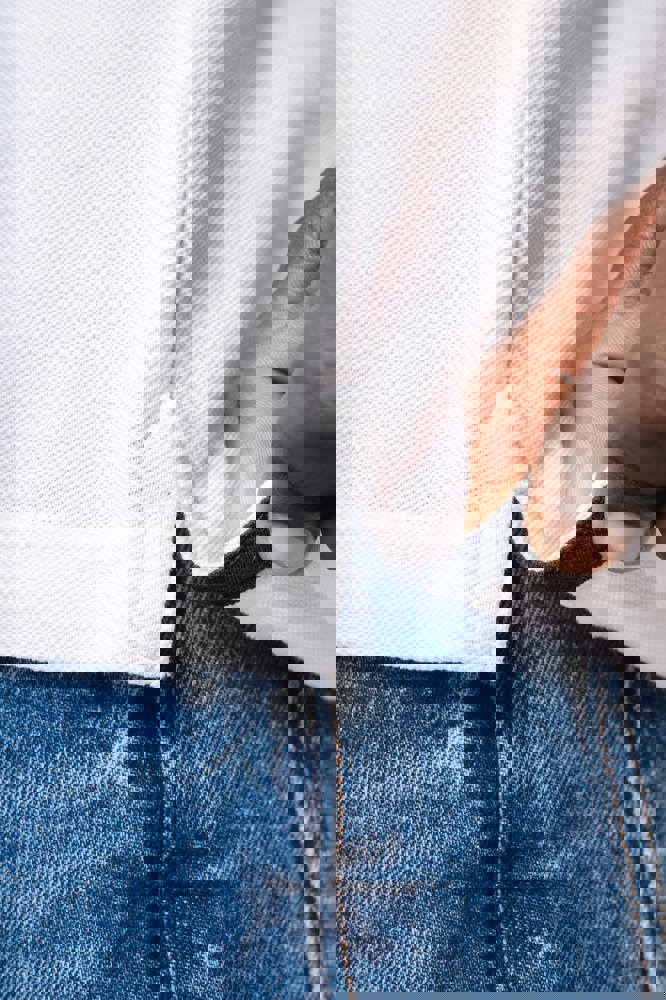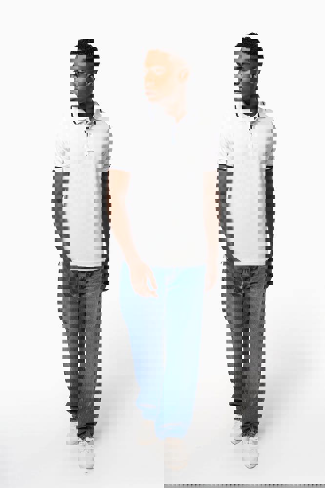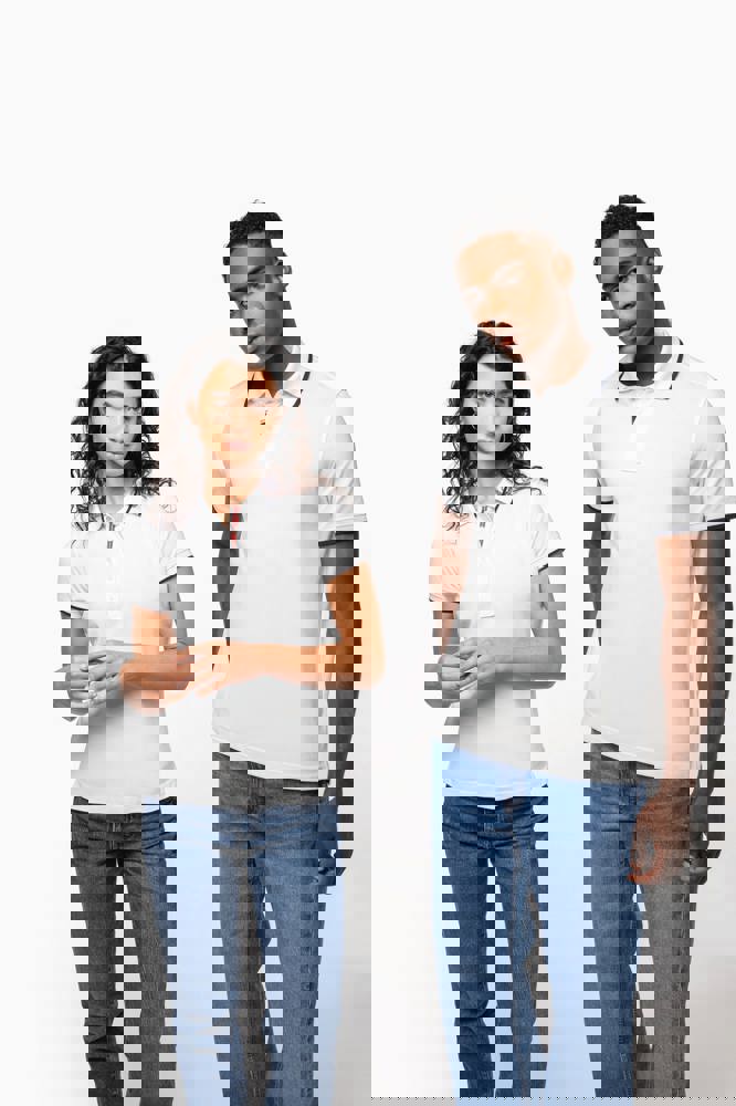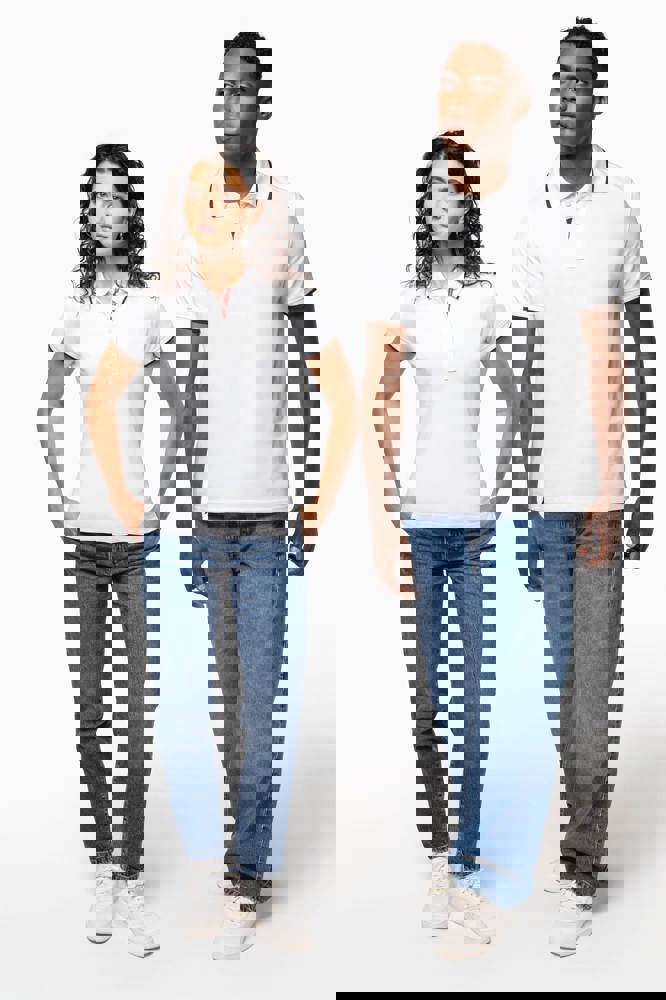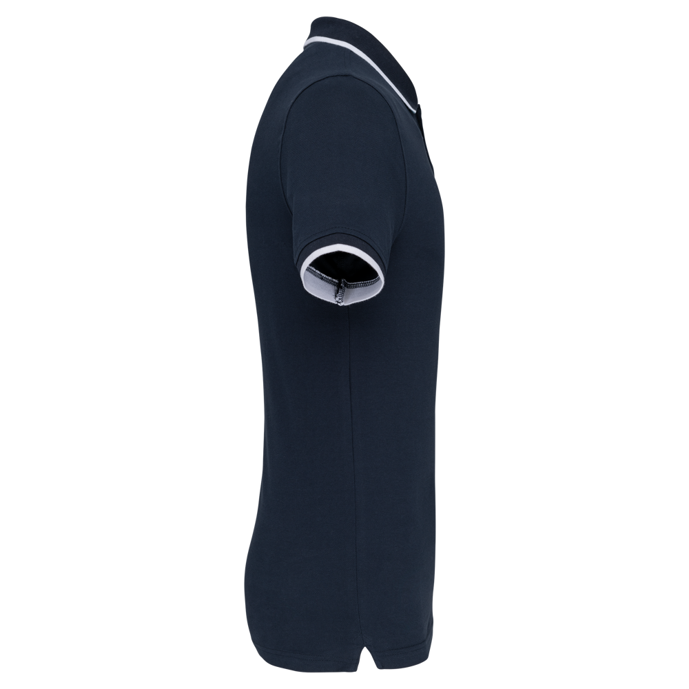 100% katoen piqué. Kraag in rib met bies in contrastkleur aan de boven- en onderkant (behalve White/ Navy : geen contrast onder de kraag, alleen een dunne rode rand onder de sluiting). Nektape en zijsplitjes in contrastkleur. Fantasie knooplijst met 2 knopen. Mouwuiteinden in rib met bies in contrastkleur. Afwerking met dubbele stiksels aan de onderkant. De kraag is verstevigd aan de achterkant en kan omhoog of omlaag gedragen worden.