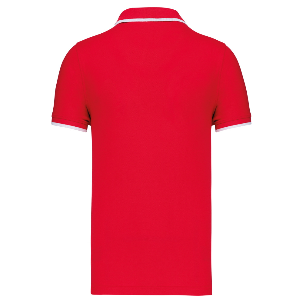 100% katoen piqué. Kraag in rib met bies in contrastkleur aan de boven- en onderkant (behalve White/ Navy : geen contrast onder de kraag, alleen een dunne rode rand onder de sluiting). Nektape en zijsplitjes in contrastkleur. Fantasie knooplijst met 2 knopen. Mouwuiteinden in rib met bies in contrastkleur. Afwerking met dubbele stiksels aan de onderkant. De kraag is verstevigd aan de achterkant en kan omhoog of omlaag gedragen worden.
