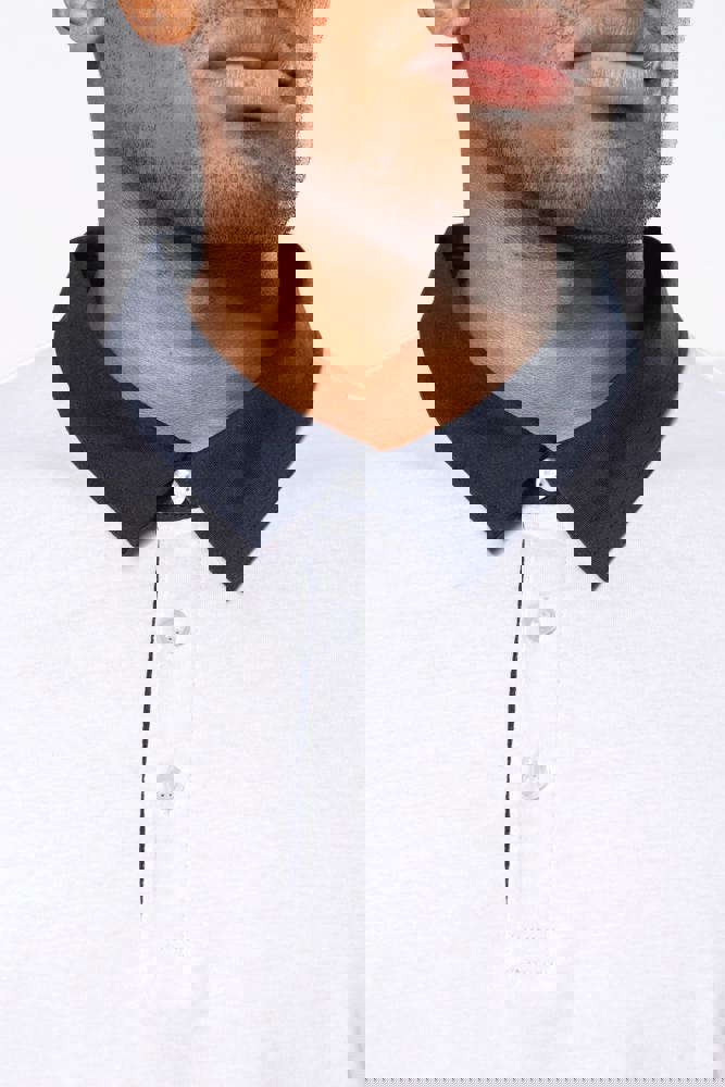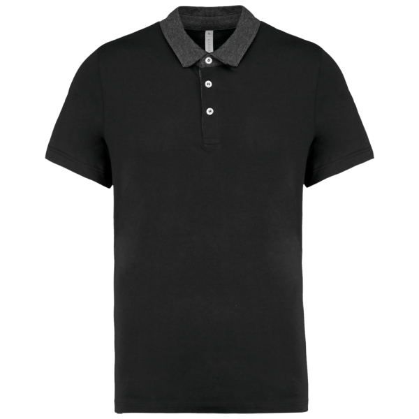 100% katoen (Dark Grey Heather: 65% polyester / 35% katoen). Gekamd katoen enzymgewassen. Contrasterende overhemdkraag en knooplijst aan de binnenzijde met 3 witte parelmoer knopen. Dubbel stiksel aan mouwuiteinden en onderkant.