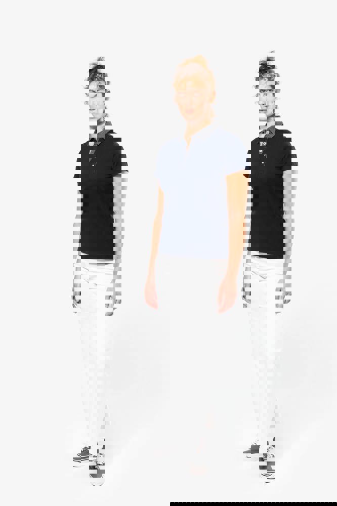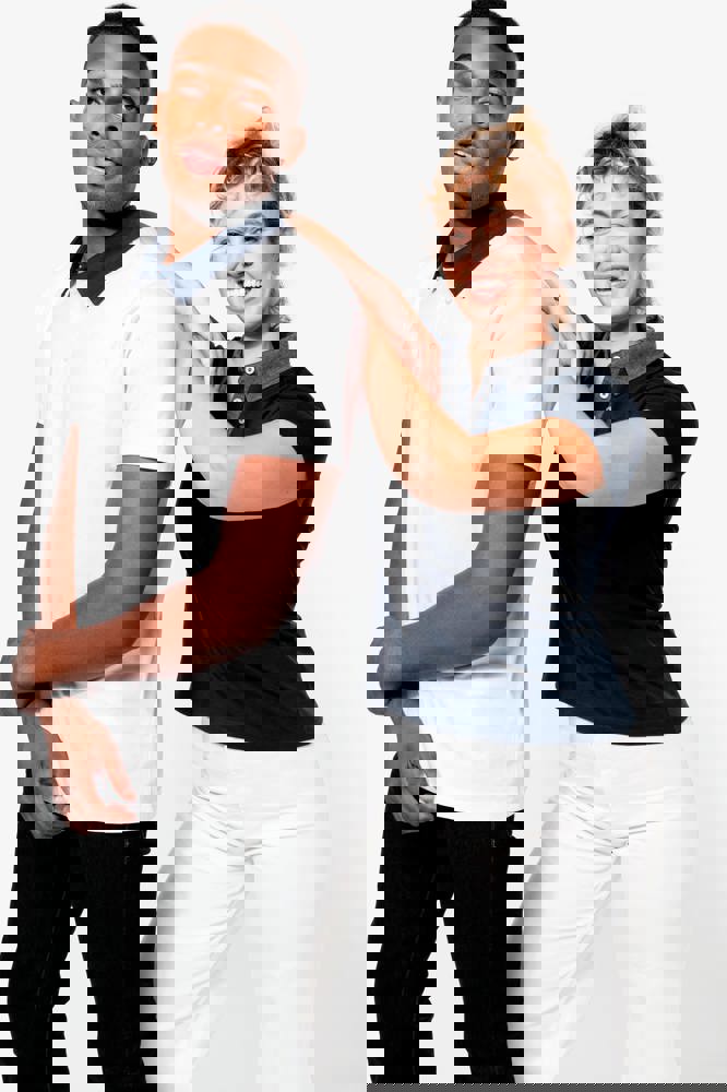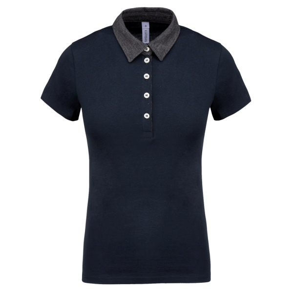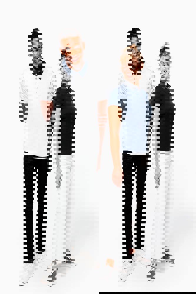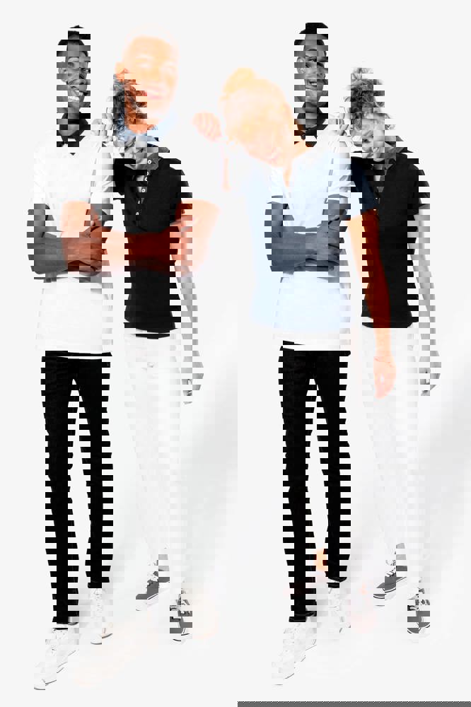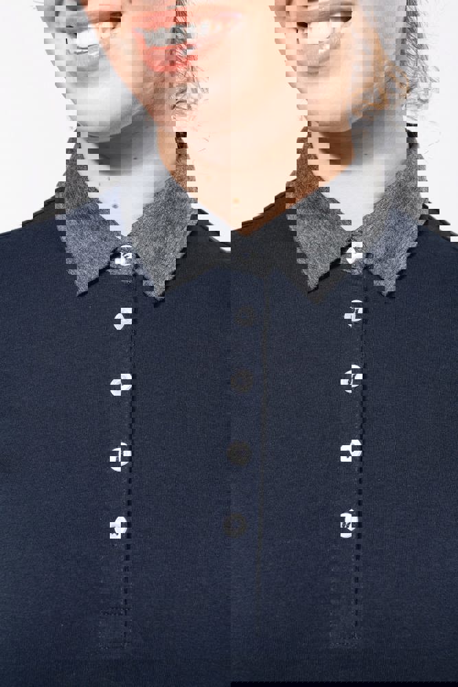 100% katoen (Dark Grey Heather: 65% polyester / 35% katoen). Gekamd katoen enzymgewassen. Contrasterende overhemdkraag en knooplijst aan de binnenzijde met 5 witte parelmoer knopen. Dubbel stiksel aan mouwuiteinden en onderkant.