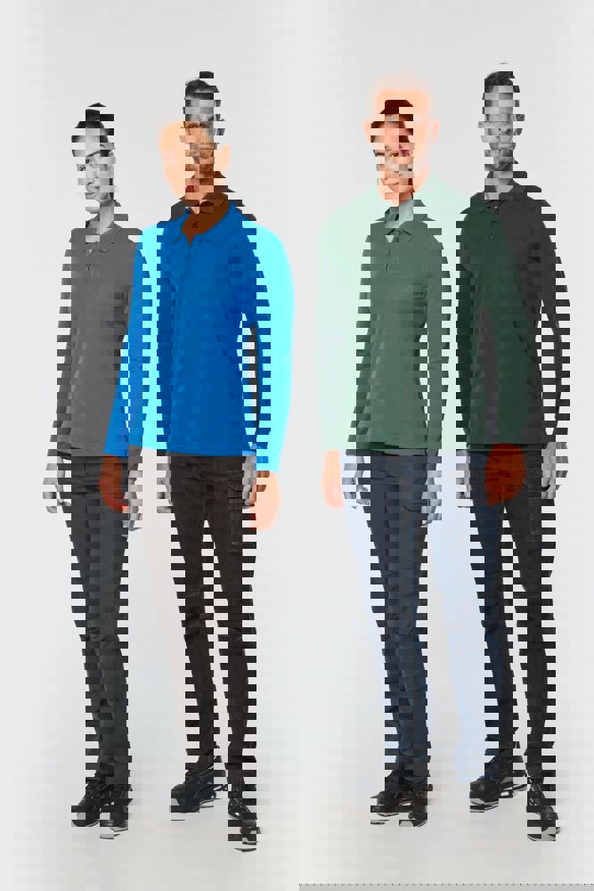 65% polyester / 35% katoen. Gekamd katoen piquétricot. Wasbaar op 60 °C. Anti-bacteriële en anti-pluisbehandeling. Knooplijst met 3 ton-sur-ton knopen. Kraag in ribboord met contrasterend nektape aan de binnenkant. Afwerking in ribboord aan de mouwuiteinden. Zijsplitten met contrasterende bies voor meer comfort. Dubbel stiksel aan de onderkant. Geschikt voor professioneel gebruik.