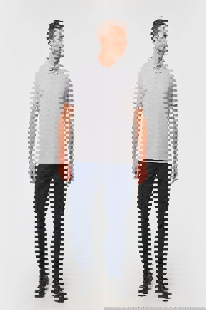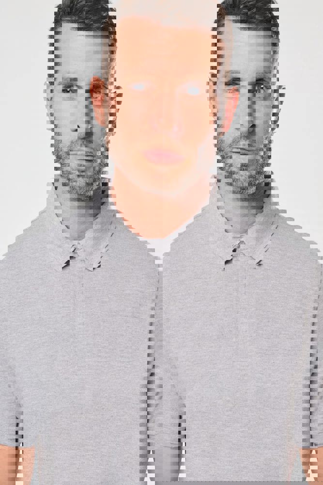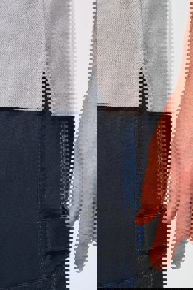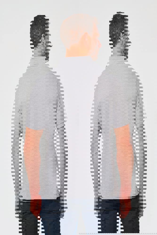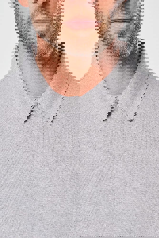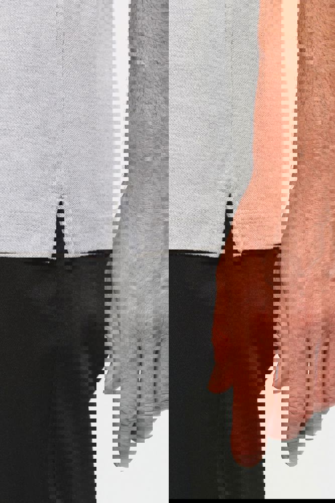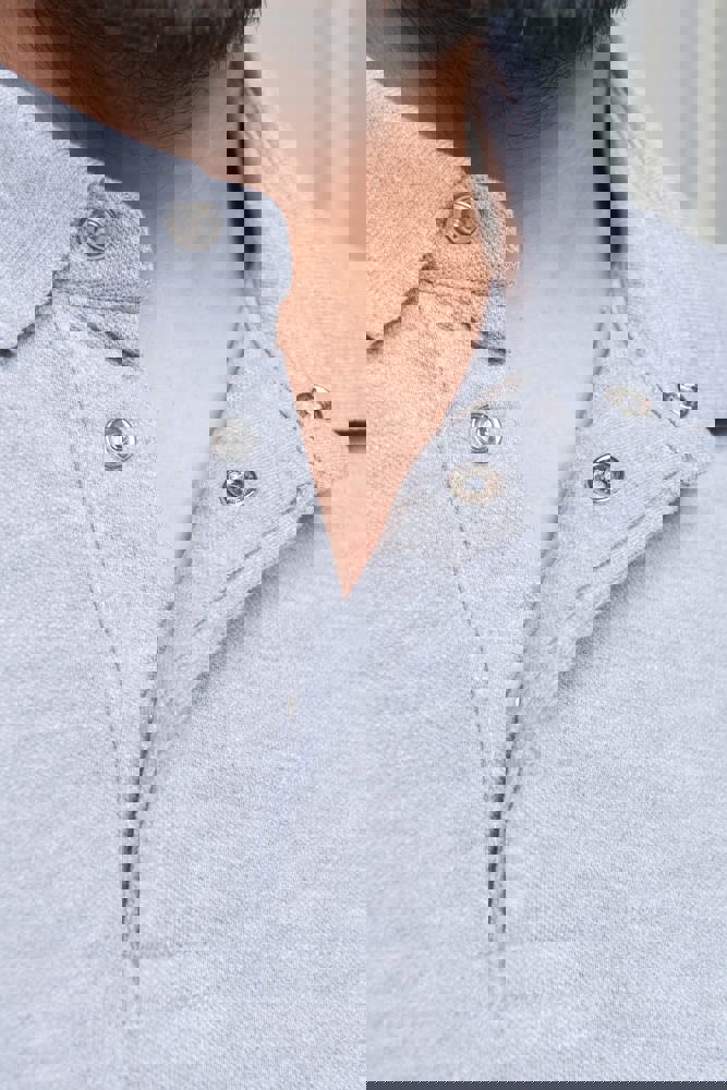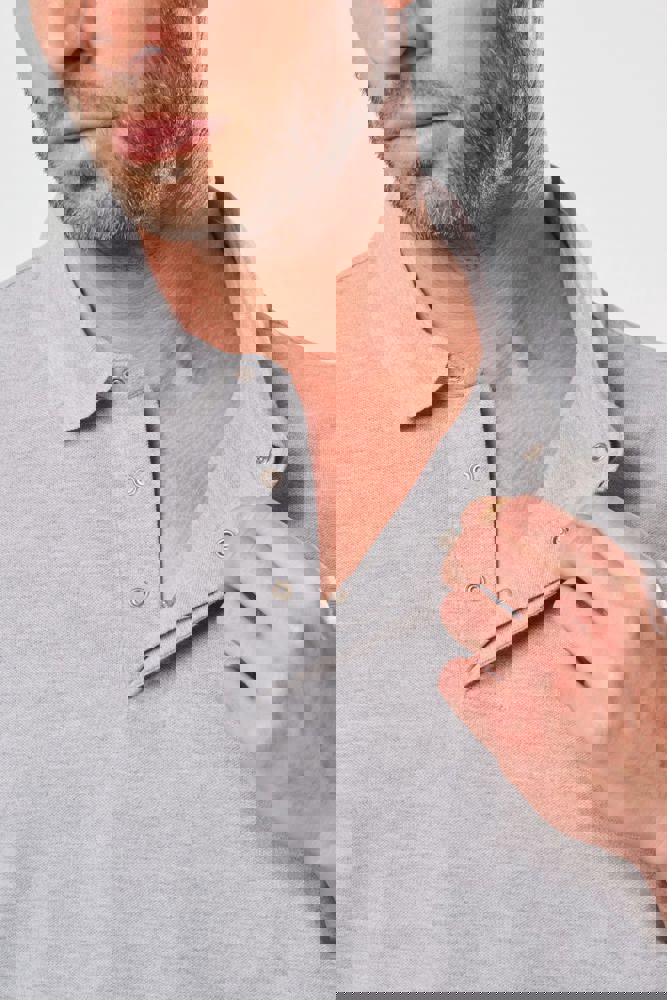 100% katoen. (90% katoen / 10% viscose voor chiné kleur). Katoenen, gekamd piquétricot. Wasbaar op 60 °C (40 °C voor chiné kleur). Kraag in ribboord op staander. Knooplijst met 3 drukknopen. Ribboord aan mouwuiteinden. Zijsplitten. Dubbel stiksel aan de onderkant.