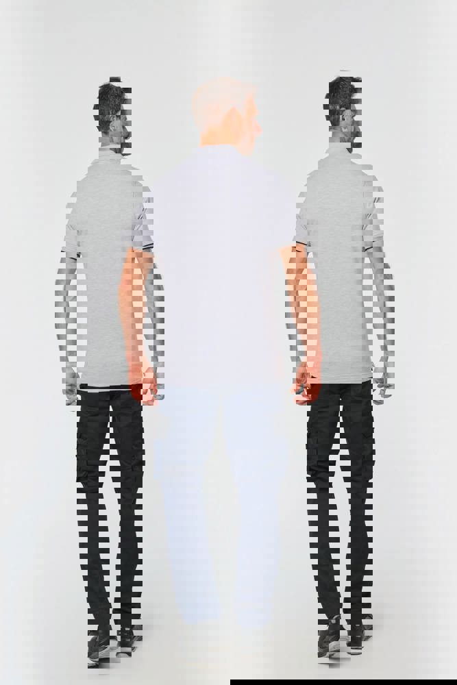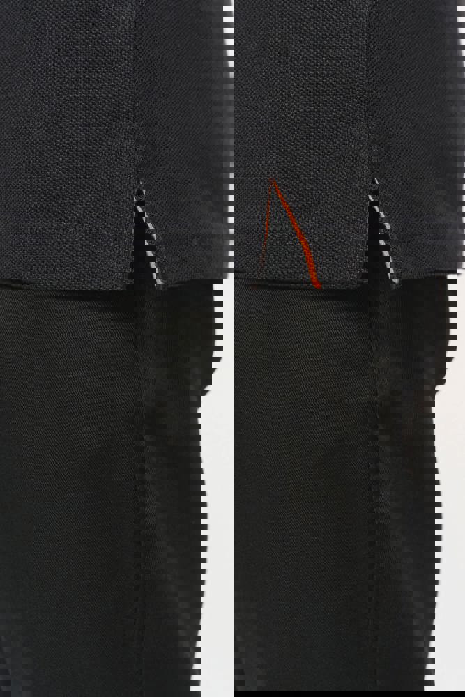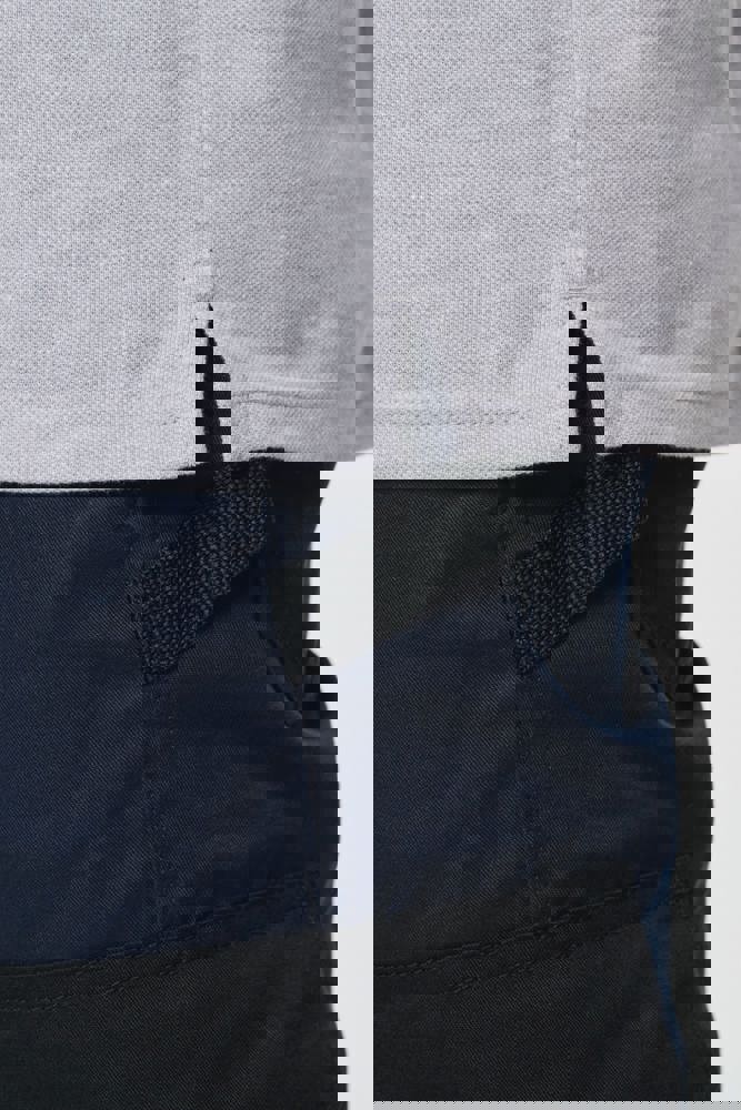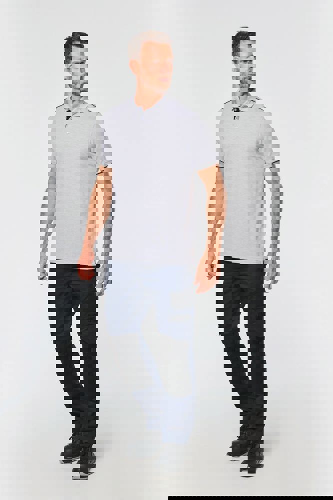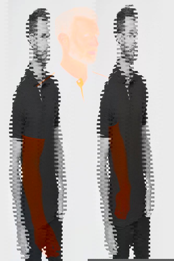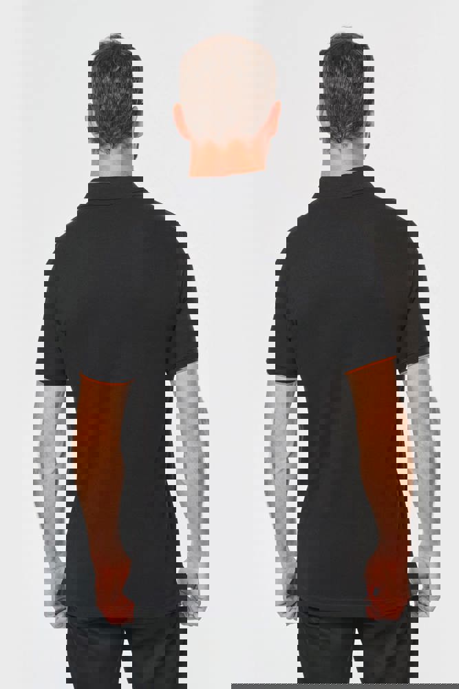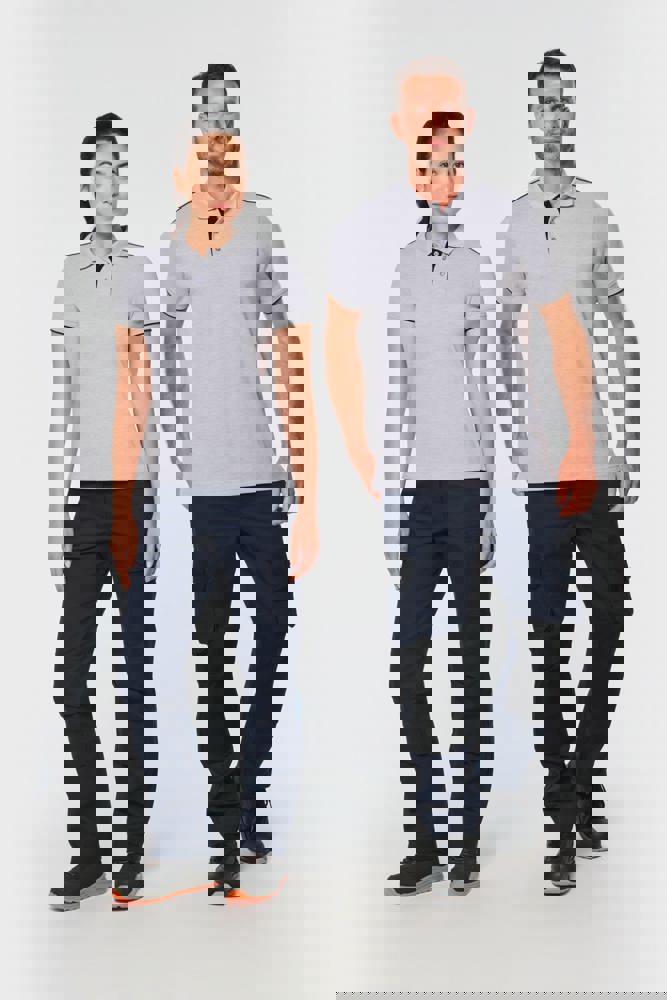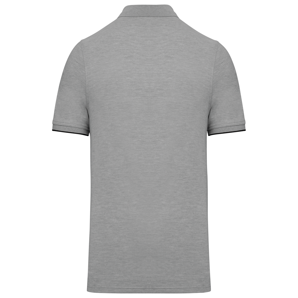 65% polyester / 35% katoen. Gekamd katoen piquétricot. Wasbaar op 60 °C. Anti-pluisbehandeling. Lijst met 3 knopen en contrasterende bies aan de binnenkant. Kraag in ribboord met nektape aan de binnenkant. Contrasterende bies aan binnenkant kraag en schouders. Ribboord met contrasterende bies aan de mouwuiteinden. Zijsplitten met contrasterend visgraatmotief voor meer comfort. Afwerking met dubbel stiksel onderaan. Ideaal voor dagelijks gebruik.