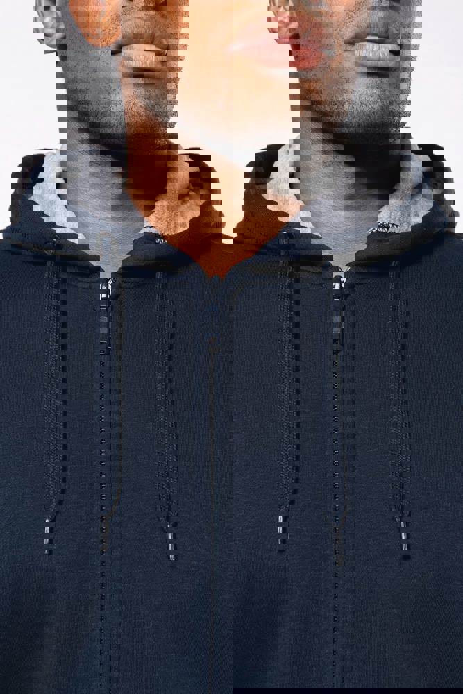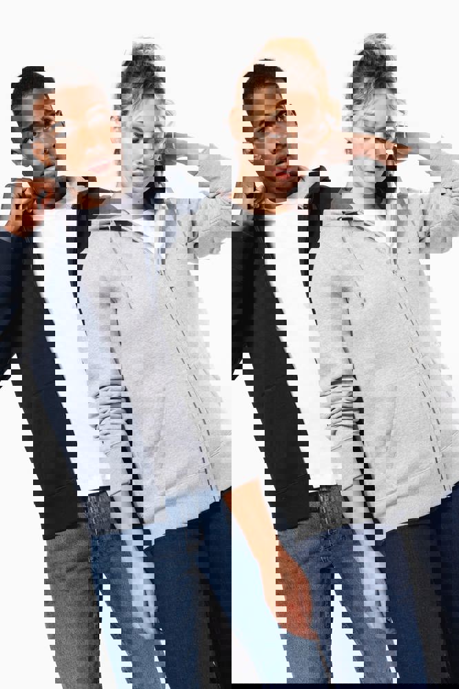 80% katoen / 20% polyester. Gekamd katoen. Voorgekrompen en gekamd fleece aan binnenkant sweater. Sillicone wash. Gecontrasteerd nektape. Gecontrasteerde capuchon in oxford grey (behalve oxford grey sweater daar is de capuchon dark grey). 'Kangaroe' zak aan de voorkant. Afwerking in ribboord. Rits.
