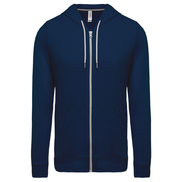 100% katoen (Oxford Grey: 90% katoen / 10% viscose). Gekamd katoen enzymgewassen. Voelt zacht aan. Losvallende moderne snit. Nektape in contrasterende kleur (Dark Grey voor de kleur Oxford Grey en Oxford Grey voor de andere kleuren). 2 kangoeroezakken. Mouwen en onderkant in hetzelfde materiaal. Contrasterende rits en tweekleurige aanrijgkoordjes aan de capuchon.