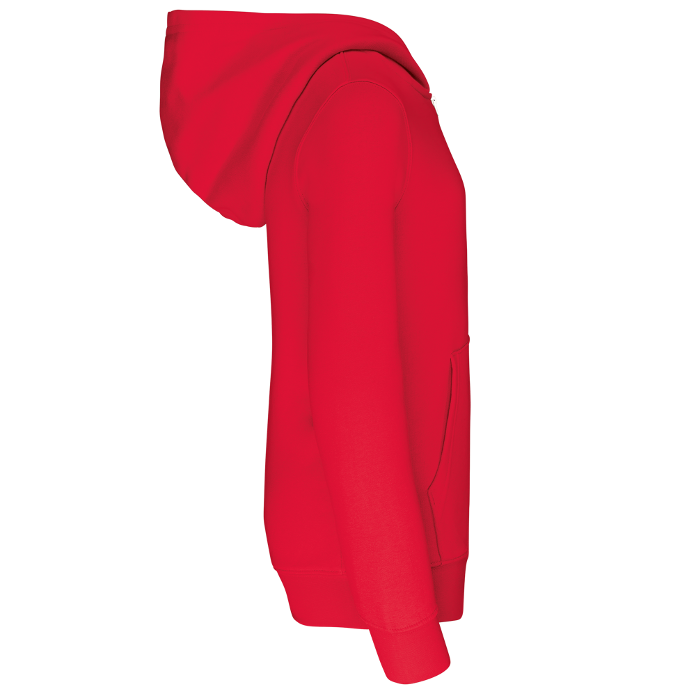 80% gekamd katoen / 20% polyester (Oxford Grey: 76% gekamd katoen / 21% polyester / 3% viscose). Geborsteld fleece aan de binnenkant. Ribboord aan mouwuiteinden en onderkant kledingstuk. Gevoerde capuchon in contrasterende kleur. Contrasterende rits. Opening voor headset-snoer in de kangoeroezak en halsopening.