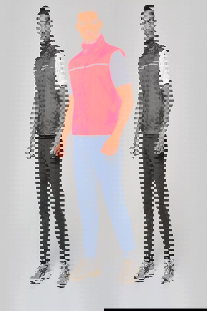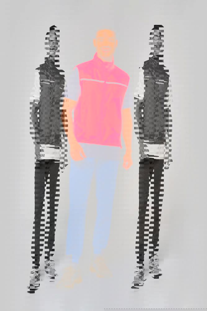 100% polyamide. Meshvoering onderaan rugzijde. Reflecterende biesjes op de voor- en achterkant....meer
