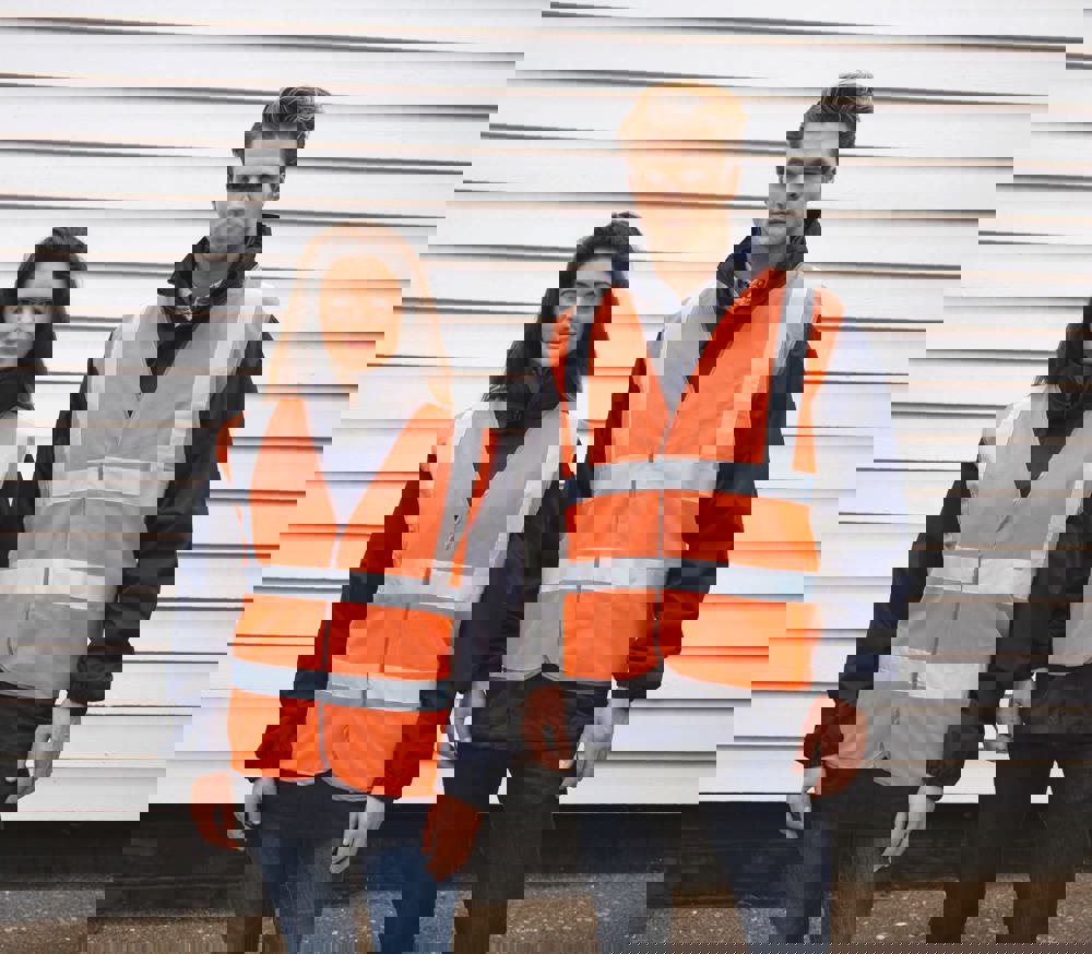100% polyester. Ruime maatvoering. Afgewerkt met grijze polyester zomen. Genaaide reflecterende stroken (50mm). Reflecterende stroken over de schouders en 2 horizontaal. Voldoet aan EN ISO 20471 type 2 normering. Nota: deze kleding dient proper en vast gedragen te worden om effect te hebben.