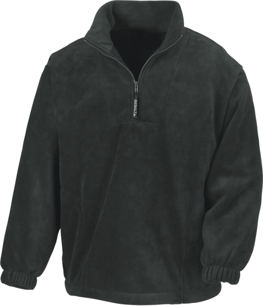 100% polyester. Zware en warmer polartherm fleece. 2 zijzakken. Aanrijgkoord onderaan. 1/4 ritssluiting. Elastische mouwuiteinden.