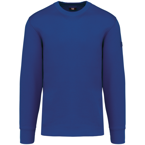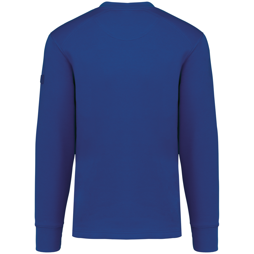 80% katoen / 20% polyester. Fleece 3 draden met LSF-behandeling (Low Shrinkage Fleece). Wasbaar op 60 °C. Ronde hals en mouwuiteinden in ribboord. Onzichtbare ritszak rechterzijkant. Versteviging op de schouders en ellebogen. Penhouder op de linkermouw. Halvemaanvormige afwerking op de achterkant. Ophanglus in de kraag. Afwerking met dubbel stiksel onderaan en verlengd achterpand voor meer comfort.