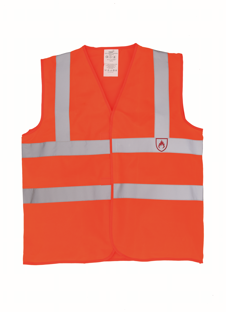100% polyester. Stof met Velcro® sluiting. Twee reflecterende banden van 5 cm breed over het lichaam en elke schouder. Bescherming tegen hitte en vlammen EN533 - Index 1. ENISO20471:2013 Class 2.