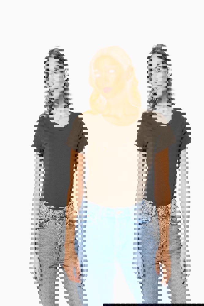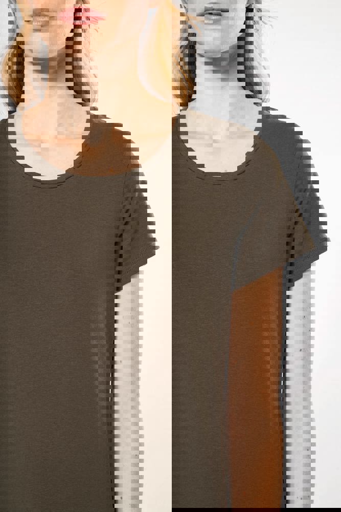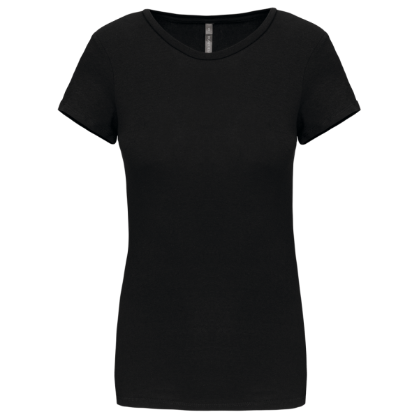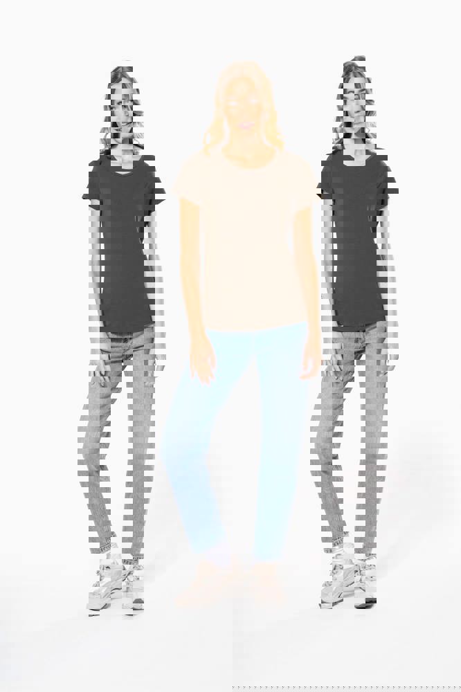 97% katoen / 3% elasthan. Chiné kleuren: 87% katoen / 9% viscose / 4% elasthan. Ronde hals. Dubbel stiksel aan mouwuiteinden en onderkant. De moderne getailleerde snit zijn volgens de laatste modetrends.