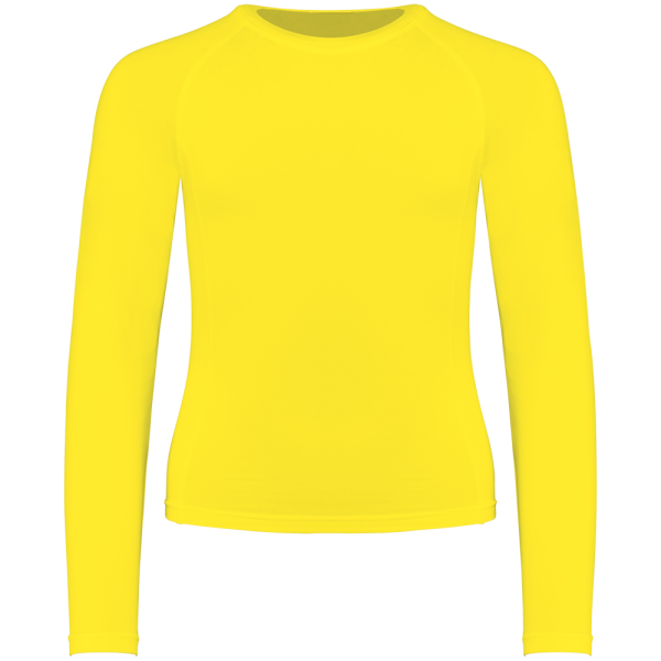 88% polyester / 12% elasthan. Ronde hals. Overstiksels toon op toon. Afwerking met dubbele stiksels.