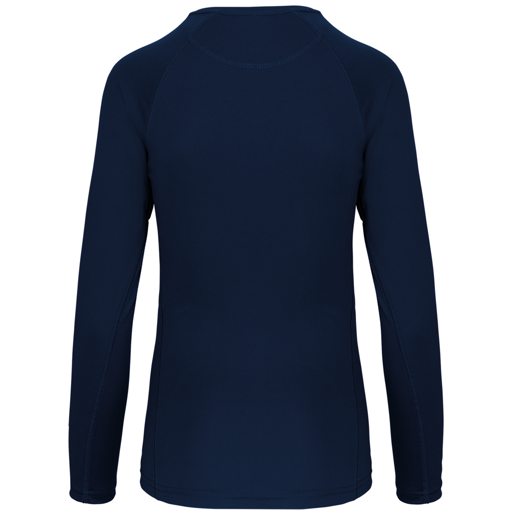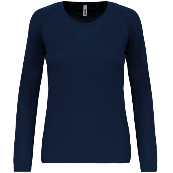 100% polyester. Sneldrogende lichte stof. Ronde hals. Nektape. Afwerking met dubbele stiksels aan de mouwuiteinden en onderkant.