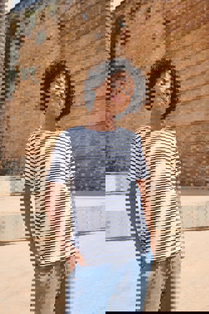 100% katoen tricot. Unisex stijl, normale pasvorm. Geribde hals in stretchstof. Tricot nekband. Dubbelgestikt. Verwijderbaar label.