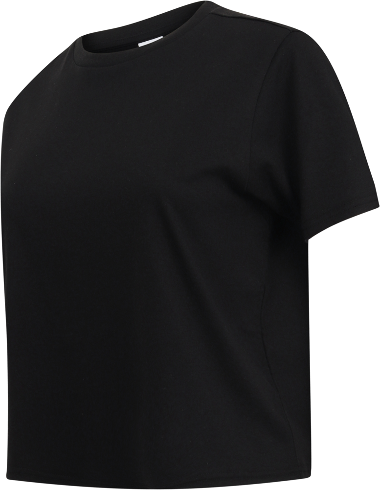 60% katoen / 40% polyester tricot. Navel t-shirt, met oversized, boxy pasvorm. Geribde hals in stretchstof. Dubbelgestikt. Verwijderbaar label.