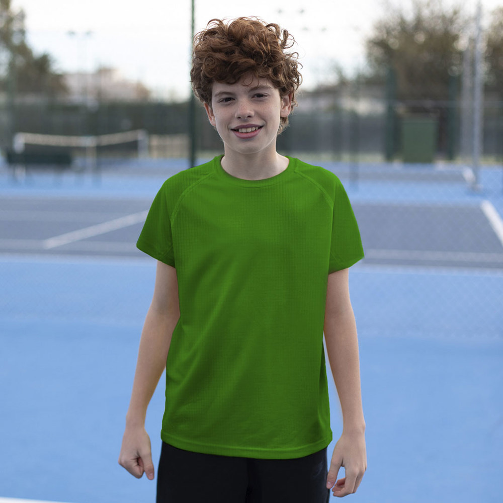 T-shirt voor kinderen, zeer ademend en gemaakt van 100% polyester van 125 g / m2. Verkrijgbaar in verschillende kleuren en in de maten 4-5, 6-8, 10-12.