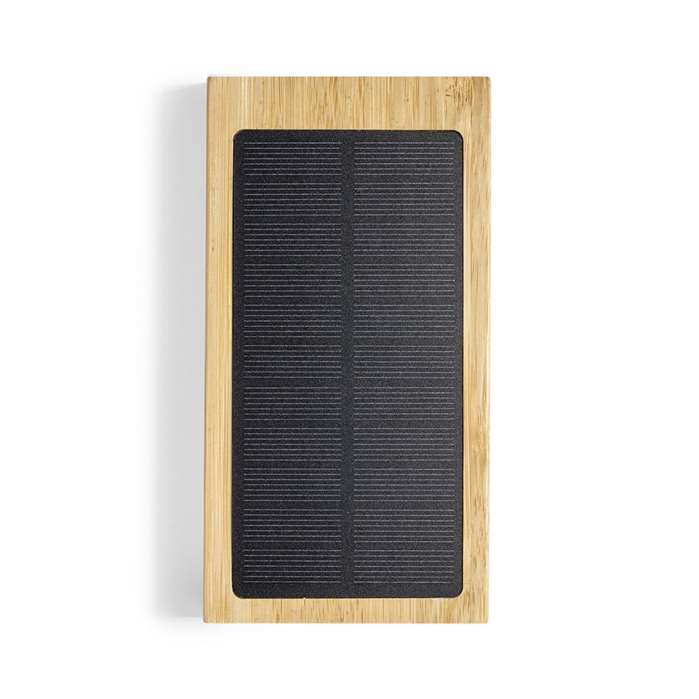 Natuurlijn, externe hulpbatterij gemaakt van bamboe uit duurzame bossen en met FSC®-certificaat. Met 10.000 mAh capaciteit en met geïntegreerde 5W draadloze oplader. Geschikt voor apparaten die compatibel zijn met draadloos opladen en inclusief een zonnelaadpaneel. Met oplaadstatusindicator, 2 USB-uitgangen, 1 Micro USB-ingang en een Type-C-ingang. Inclusief Micro USB-oplaadkabel en gepresenteerd in een aantrekkelijke eco-design doos. Met FSC®-label op het artikel. De capaciteiten van al onze externe hulpbatterijen zijn reëel. Ze bevatten allemaal niet-gerecyclede batterijen van klasse A, met een levensduur van ten minste 500 laadcycli, en voldoen aan de CE-regelgeving. Bovendien zijn ze vervaardigd volgens RoHS-normen, en voldoen ze aan de volgende veiligheidseisen: Overlaadbeveiligingssysteem voor de powerbank. Volledig ontladingsbeveiligingssysteem, dat de duurzaamheid van de powerbank verhoogt. Blokkeersysteem om kortsluiting te voorkomen. Constant oplaadoverdrachtsysteem, in overeenstemming met de capaciteit van het doelapparaat.